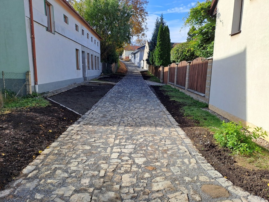 Oprava kamenné cesty na "Zámku" - práce na stavbě byly ukončeny 14.10.2024. Podklad cesty byl srovnán a zhutněn, krajnice byla vyztužena. Na opravu cesty byla obci poskytnuta dotace z rozpočtu Jihomoravského kraje z programu "Podpora rozvoje venkova JMK pro rok 2024", ve výši 275.000,- Kč.