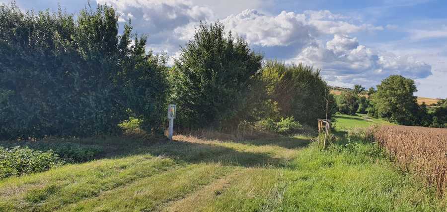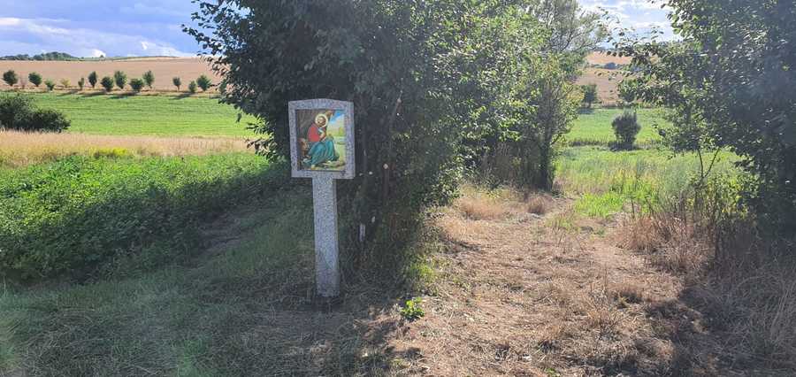 Obnovení obrázku sv. Marka v polích "Na Paděličkách". Několik desetiletí ležel tento sloupek zlomený a zarostlý v trávě na konci cesty kolem "Padělíčků" směr k pruskému rybníku.